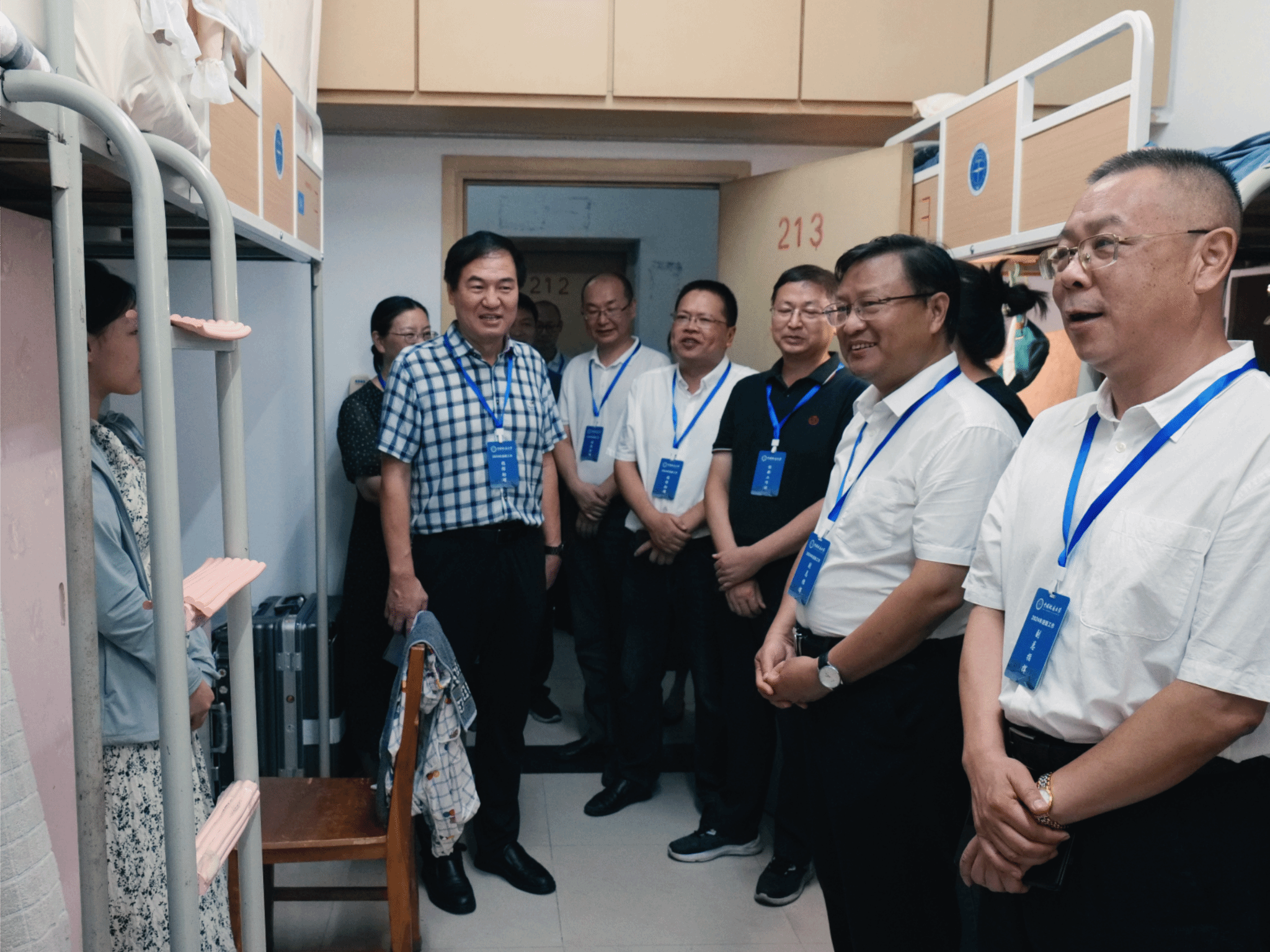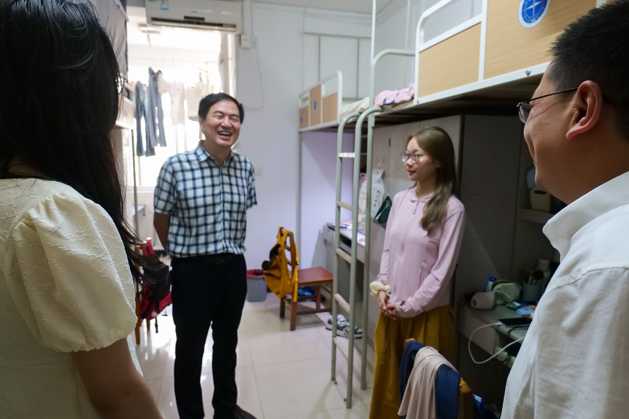 为了更好了解新生入校后的学习与生活情况,加强员工宿舍管理,开展安全教育工作,9月3日下午,张宽裕、龚丽、龚健、王忠、李世祥、朱江洪、吕凌燕等公司领导在南望山校区深入走访员工宿舍,与员工展开亲切交谈。
