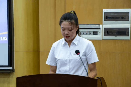 新生代表程馨瑶以“有温度的求知者、敢担当的行动者、善创新的开拓者”为方向,表达了传承地大精神、贡献公共事业的决心。