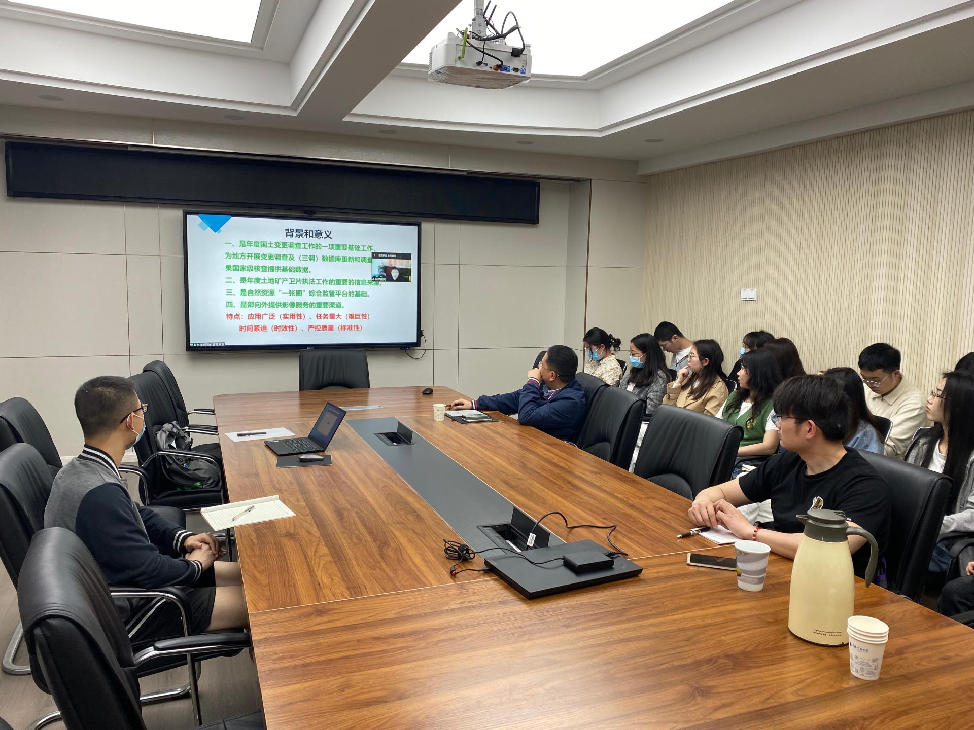 王锦高工从遥感监测的背景和意义切入,详细阐述了三调遥感监测的主要任务、基础资料获取、DOM生产、遥感监测信息提取、成果汇交等方面的内容。他同时系统展示了在任务量大、时间紧迫、严控质量的工作背景下,遥感监测如何支撑自然资源部年度国土变更调查、年度卫片执法及“一张图”综合监管等重要工作。报告会上,师生们就相关话题与两位高工进行了深入探讨与交流。