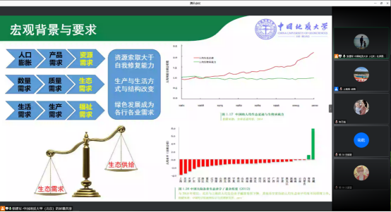张建军教授的报告从五个部分展开,主要包括宏观背景与要求、基本思想与理念、基础理论与规划发展历程、规划过程与要点、重点关注问题,报告系统性论述了国土综合整治与生态修复工作的紧迫性、科学性、必然性、系统性和复杂性特征。张教授利用内容详实、图表多彩的PPT,首先梳理了自然资源管理领域国家宏观方针政策的变迁历程,总结出新时期人民对“资源需求、生态需求、福祉需求”的新特征;随后,张教授阐明了自然资源利用与管理“摸清资源家底是前提,打破资源诅咒是导向,空间用途管制是约束,有效实施是路径”等要点,剖析了“山水林田湖草生命共同体”、“两山理论”等理论的重要内涵;接着,张教授建议以导向目标与思路来指导编制思路,并从农业、城镇、生态空间及重大工程落地视角介绍编制过程及细节;最后,张教授指出今后需关注数据集成、思维转换、整治与修复两者关系、规划尺度衔接等尚未解决的重要问题。