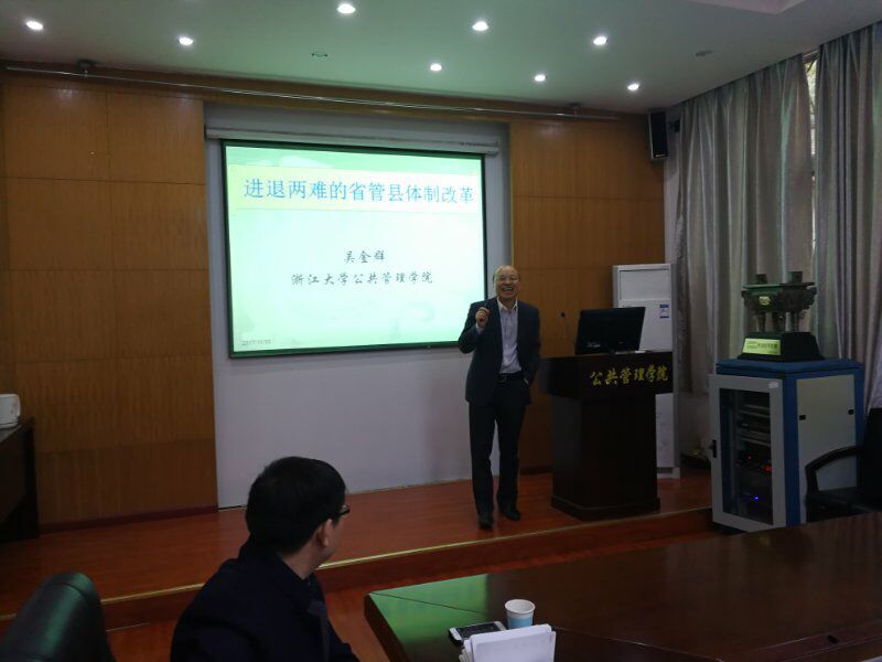 (公共行政系)11月10日下午,应公司邀请,浙江大学必一运动吴金群副教授、博导来公司学术品牌活动“公共管理讲坛”作题为“进退两难的省管县改革”的学术报告。报告由经理王占岐教授主持,公共行政系黄德林、唐皇凤、李世祥、刘中兰、赵频等老师与40余名本硕博员工现场聆听。