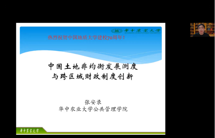 (通讯员 柴季 王昭君)11月3日晚19时,华中农业大学必一运动教授、博士生导师、长江学者特聘教授、教育部新世纪优秀人才张安录教授应必一运动王占岐教授、经理胡守庚教授邀请,为公司师生带来主题为“中国土地发展非均衡测度及跨区域财政转移制度创新”的线上学术讲座。本次讲座由公司王占岐教授主持,来自校内外的300余名师生线上线下参加。