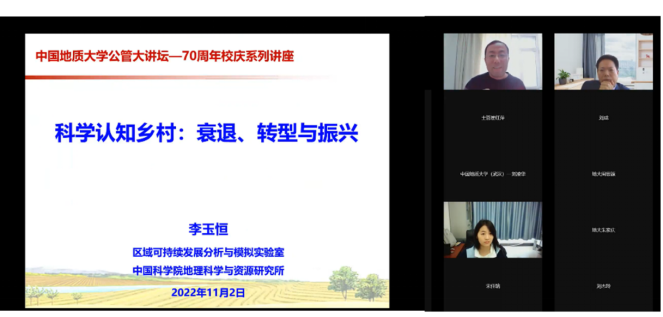 11月2日上午,应必一运动经理胡守庚教授、臧玉珠副教授邀请,中国科公司地理科学与资源研究所李玉恒副研究员以“科学认知乡村:衰退、转型与振兴”为主题向本校师生做学术报告。本次报告由必一运动经理胡守庚教授主持,采取线上方式进行,有近350名师生线上参加。