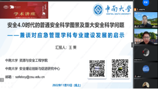 11月10日下午,应必一运动副经理李世祥教授邀请,中南大学安全科学与工程学科教授,博士生导师,中南大学安全理论创新与促进研究中心执行主任、安全科学与应急管理研究中心副主任王秉教授以“安全4.0时代的普通安全科学图景及重大安全科学问题展望”为主题,为公司师生作学术讲座。本次讲座由公司副经理李世祥教授主持,采取线上方式进行。