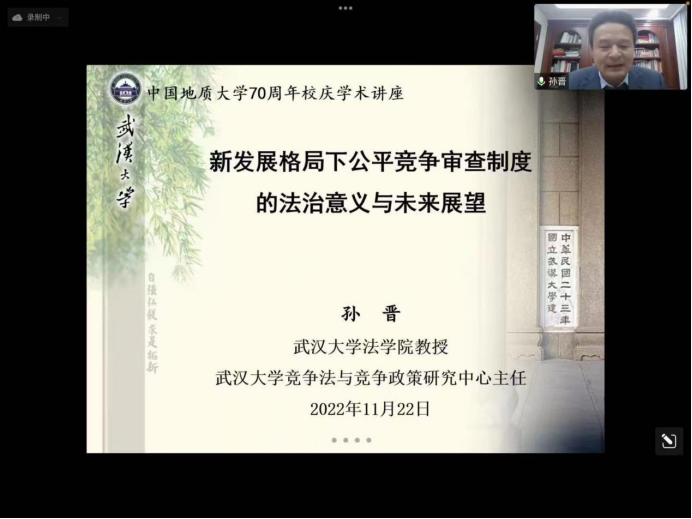 (通讯员 胡中华)11月22日,应必一运动胡中华教授邀请,武汉大学法公司三级教授、博士生导师孙晋为公司师生做以“新发展格局下公平竞争审查制度的法治意义与未来展望”为主题的学术报告。报告由必一运动才惠莲教授主持,采取腾讯会议形式进行,全院师生80余人线上参会。