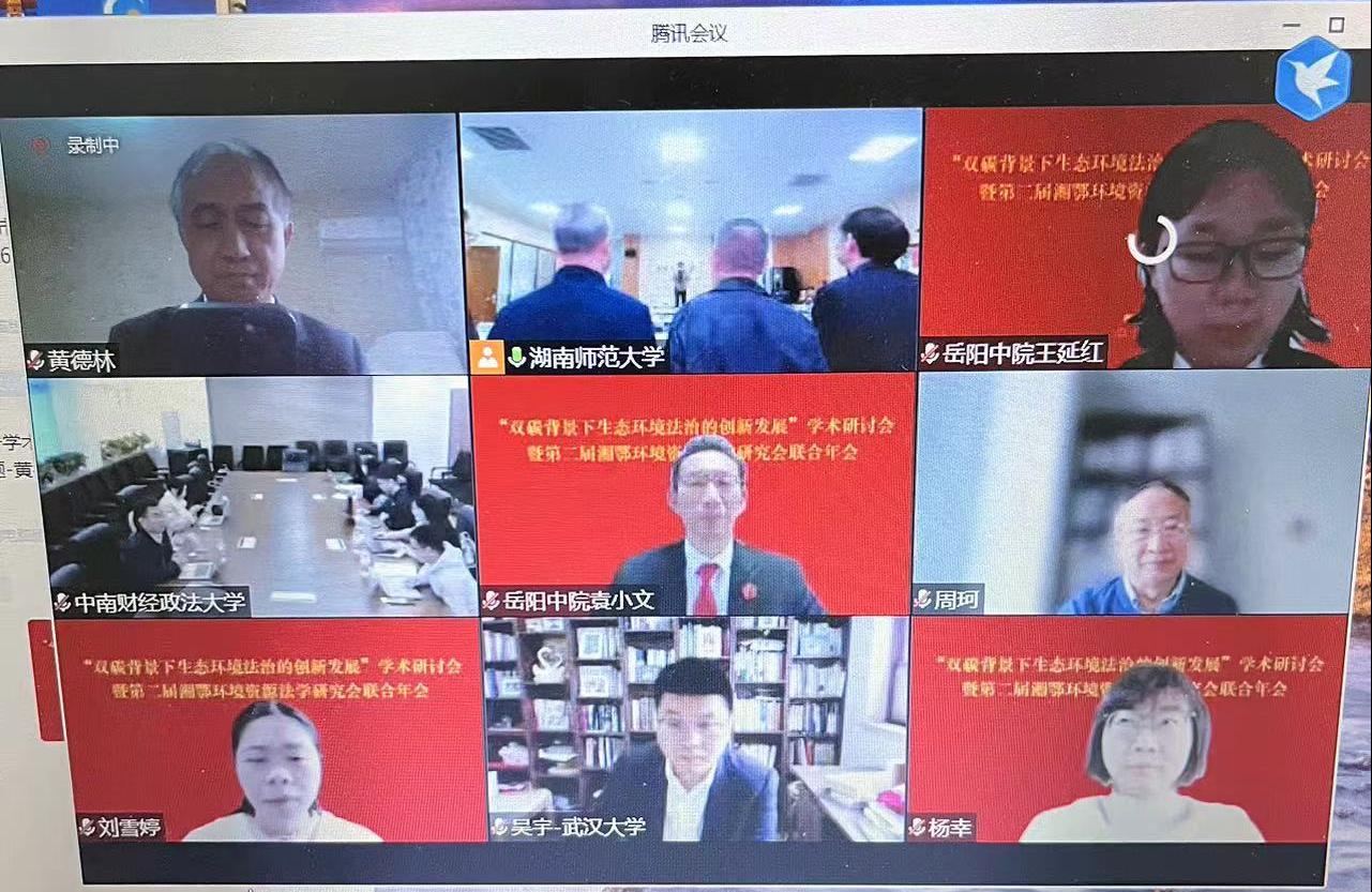 由湖北省和湖南省法学会环境资源法学研究会主办的“双碳背景下生态环境法治的创新发展”学术研讨会暨第二届湘鄂环境资源法学研究会联合年会于2022年11月27日顺利召开。此次会议由湖南师范大学法公司、湖南芙蓉律师事务所承办,《环境保护》杂志社、《理论月刊》杂志社协办,会议因疫情原因采取线上方式举行。