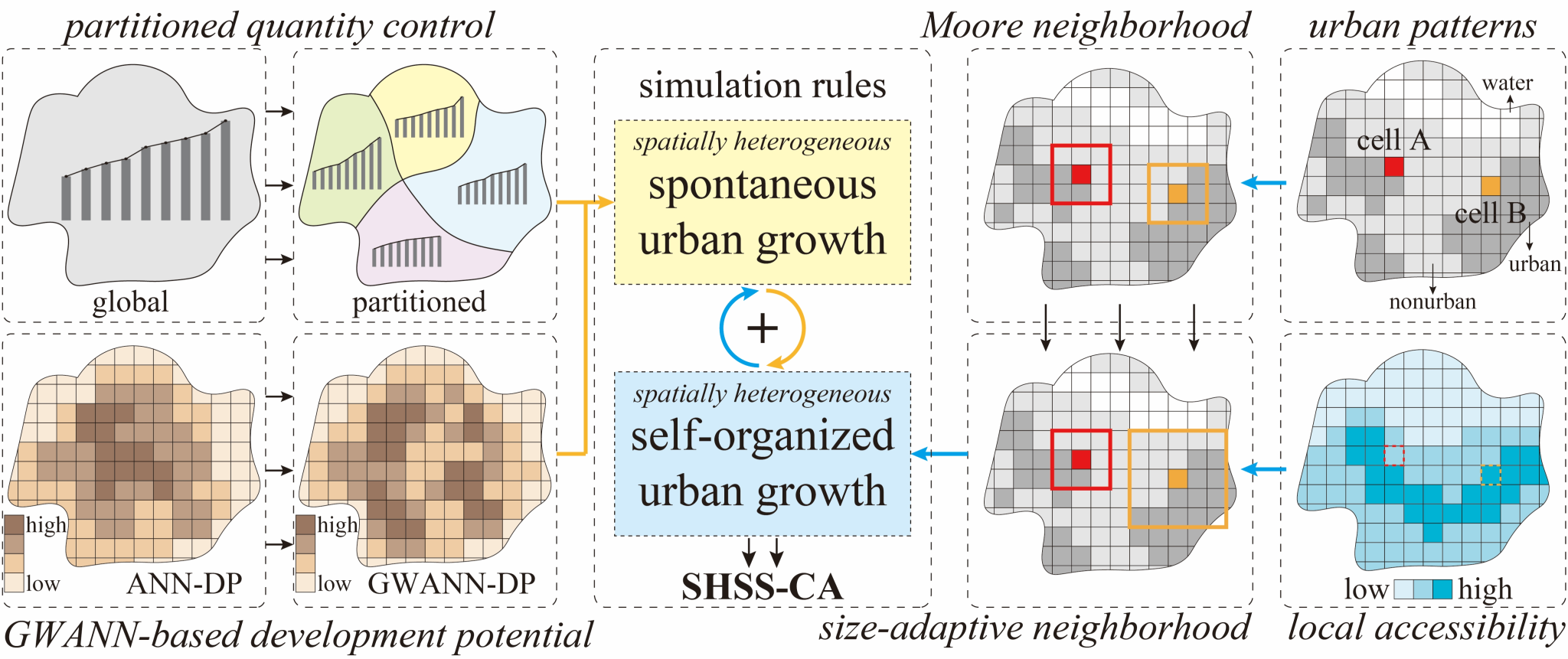 2. Bin Zhang, Xuecao Li, Haijun Wang, Sanwei He, Haoran Zeng, Xiaoxu Cao, Youcheng Song, Chih-Lin Tung, Shougeng Hu*. 2024. Modeling self-organized urban growth by incorporating stakeholders’ interactions into the neighborhood of cellular automata. Cities, 149, 104976.