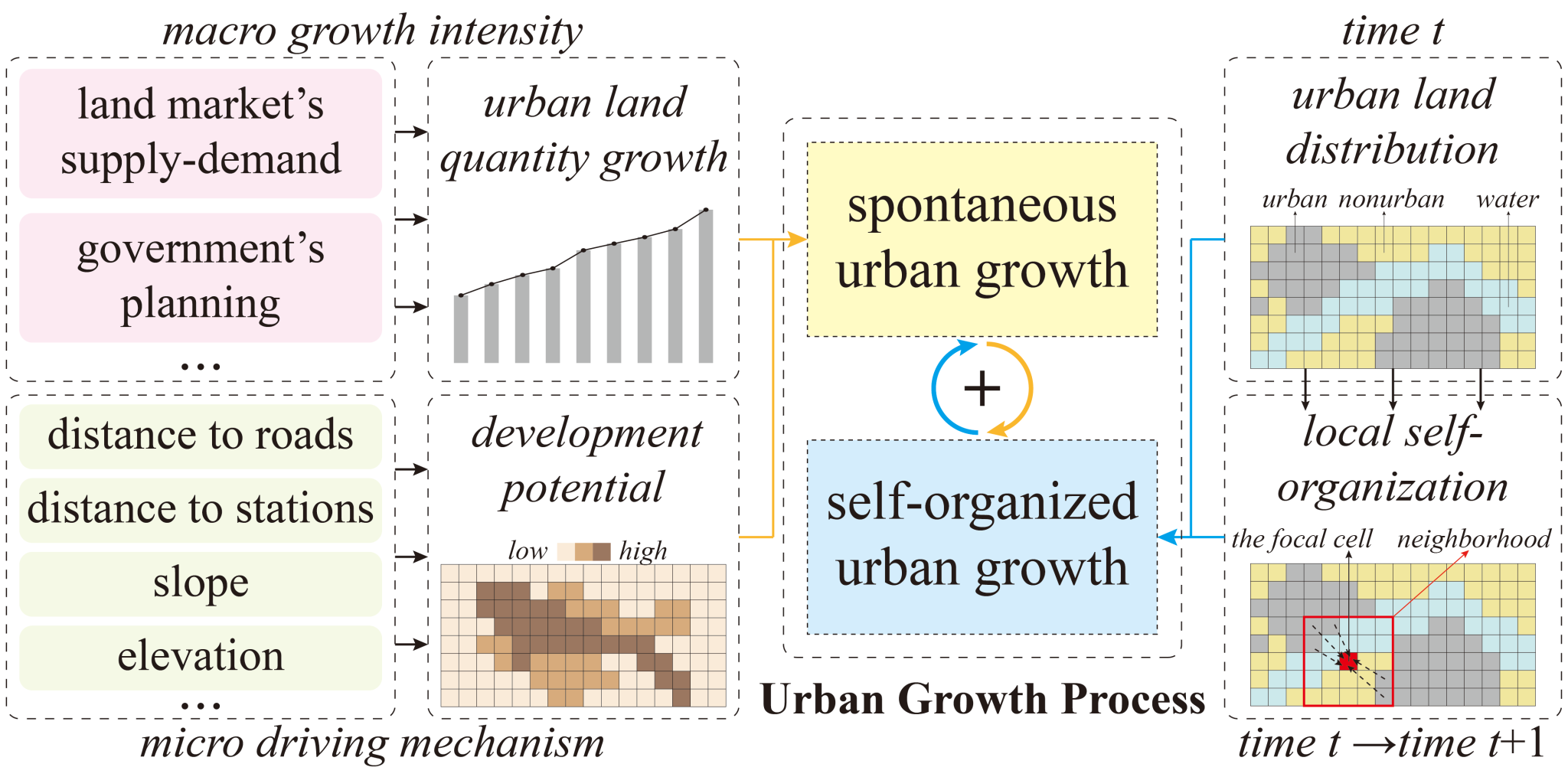 近期,必一运动公司(武汉)胡守庚教授、张彬副教授等发表系列论文,提出了自然和自组织扩展过程耦合的城市空间扩展模拟方法,为精细化模拟城市空间扩展过程提供了新思路,能够有效支撑国土空间规划和城市更新等工作任务。