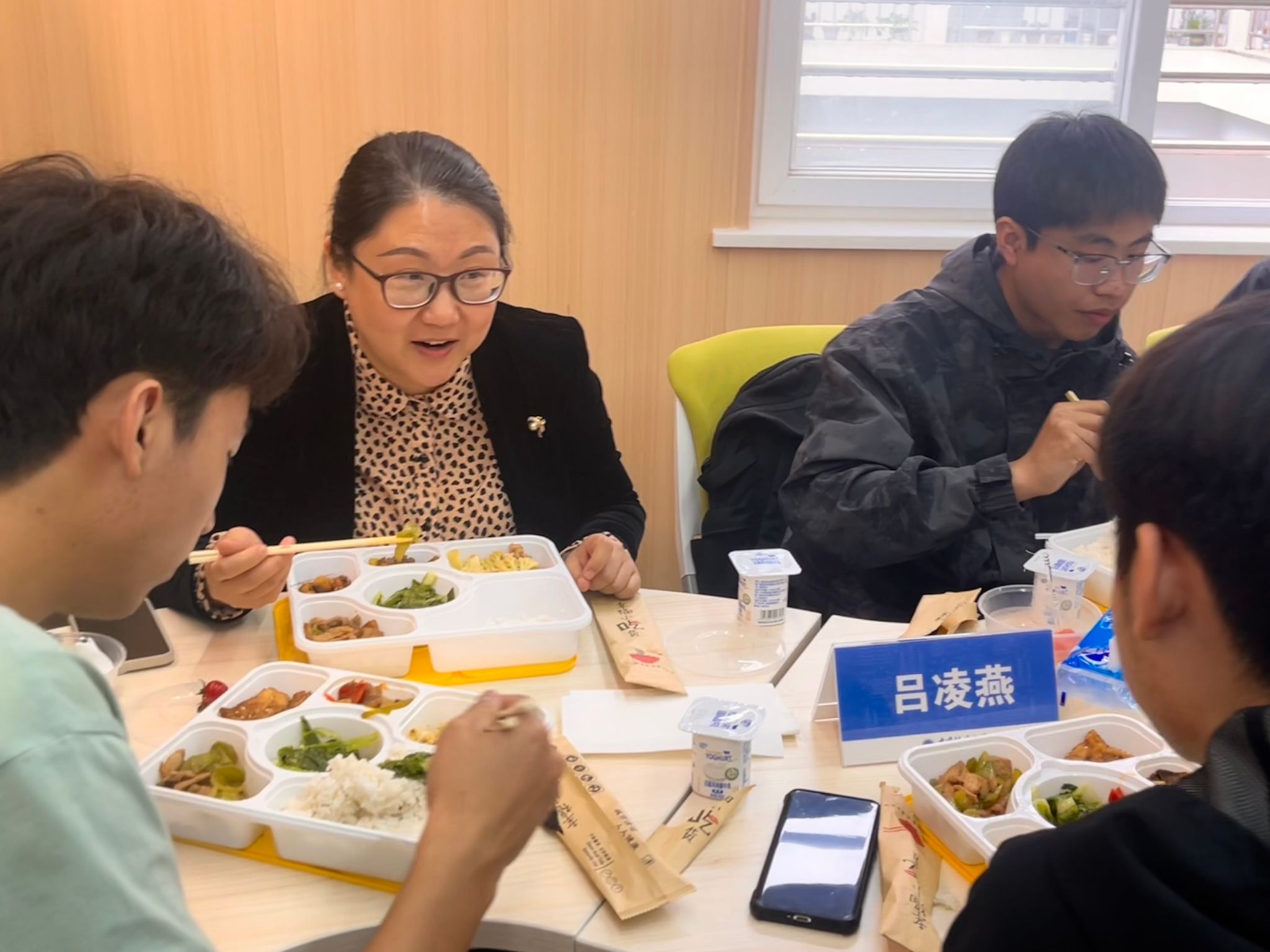 活动在温馨融洽的氛围中进行,与会师生一边享受着美味的午餐,一边就专业发展前景、专业学习建议、自身生涯规划和校园日常生活等问题进行了深入交流,老师们细心聆听同学们的疑问,并作出耐心解答。当前,2023级的同学们普遍面临着专业分流、转专业等疑惑,此次午餐会的举办很好地为大家提供了咨询和了解的途径,进一步帮助他们全方面了解专业,坚定专业学习信心。