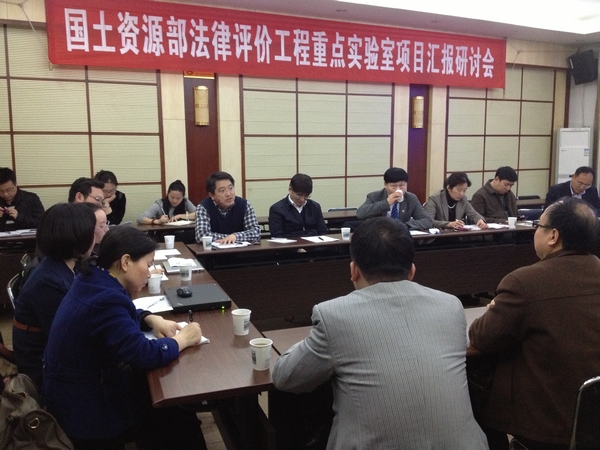 会议首先听取了国土资源部法律中心邹谢华副主任关于各项目的立项背景和国土资源部法律中心方面项目进展的情况介绍。随后,基础理论项目组、土地矿产项目组、数据库项目组分别从研究方案、研究内容和框架、预期研究结果、项目进展情况等方面作了汇报。