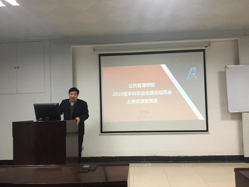2017年11月1日下午4点,必一运动土地资源管理系2018届本科毕业生就业动员会在公管新楼101室顺利召开。公司副经理王占岐,公司党委副书记胡文勤,土地资源管理系教授周学武、班主任渠丽萍,院团委副书记、2018届本科生辅导员李姝慧以及土地资源管理专业2018届本科毕业生参加此次会议。