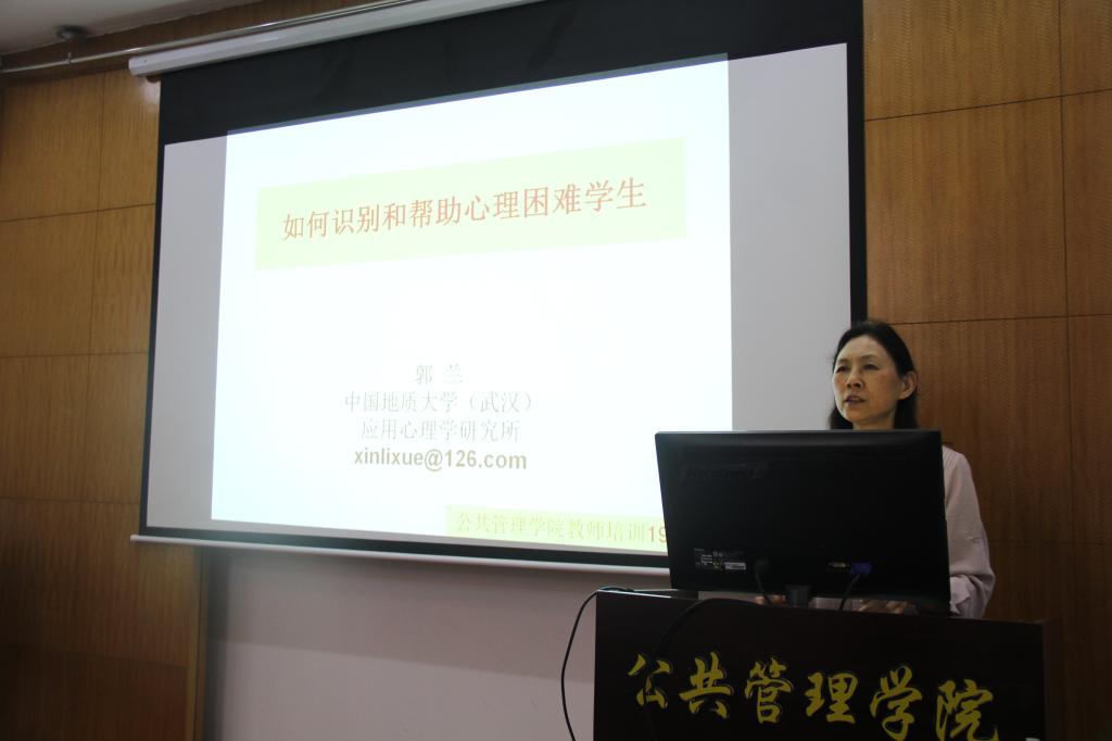 (通讯员:李喆 林家胜)5月30日上午8:00,2019年春季学期学务指导/班主任心理工作培训会于公管楼 B209顺利召开。公共管理公司党委书记张吉军、党委副书记刘国华、各系系主任、书记及公司四个年级班主任/学务指导、全体辅导员出席本次会议。培训会邀请公司应用心理研究所郭兰教授主讲。
