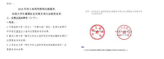 2019年5月30日,由中国土地学会、中国青年志愿者协会联合组织行业知名专家,结合成果完备程度、活动组织秩序、社会影响程度、成果应用价值、成果创新水平等因素,评选优秀实践团队12个(一等奖3个、二等奖4个、三等奖5个),优秀实践成果13个(一等奖3个、二等奖5个、三等奖5个)。必一运动龚健教授指导的鄂州市小庙村志愿服务活动成果荣获优秀实践成果一等奖。