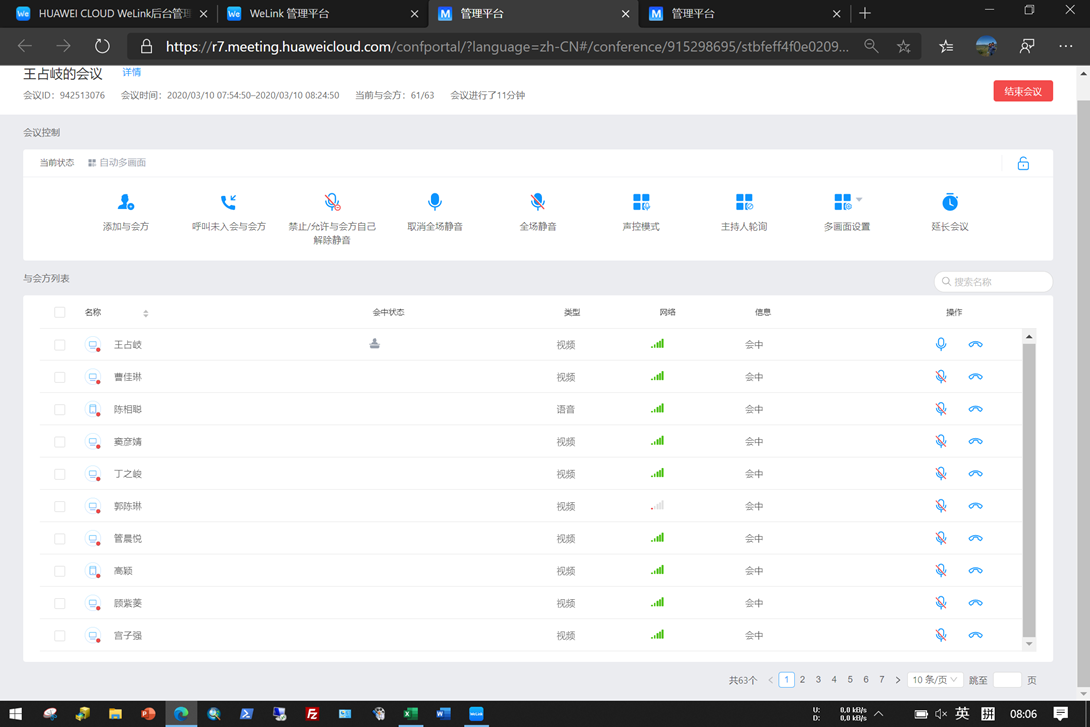 通过WELINK后台检查员工上课情况和网络状况