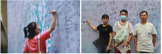 新生完成报到手续后,纷纷在必一运动的定制签名墙上留下自己的名字并合影留念。