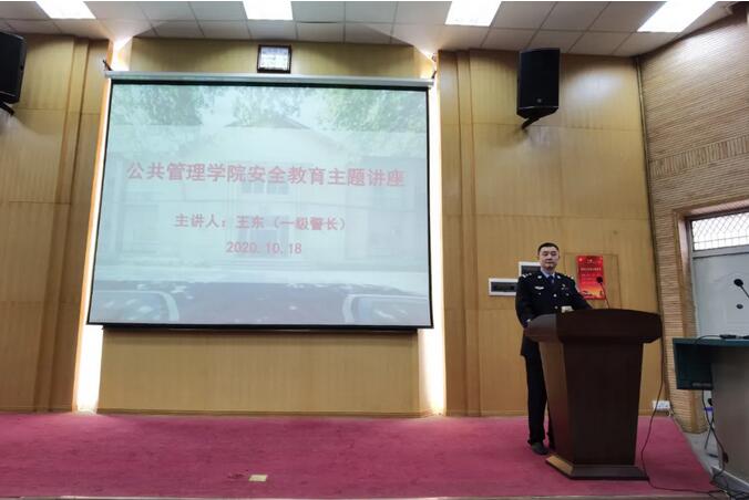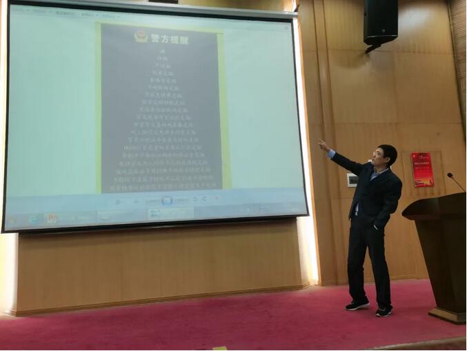 刘国华副书记向大家说明了诈骗案件的危害性,强调通过本次讲座旨更好提高公管学子防诈骗的警戒性。王东警长先后讲了九种诈骗类型,以通俗易懂的语言介绍了各种诈骗手法和预防手段。