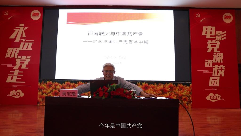 大家首先观看了吴宝璋教授讲授的电影党课视频《西南联大与中国共产党》。吴教授从组建西南联大的清华大学、北京大学、南开大学三所高校切入娓娓道来讲到,故土在战争中沦陷,大学被占领、被炸毁,一群十八九岁的青年员工匆匆出发,徒步南迁,横穿湘黔滇来到联大。联大近9年间有党员206人,在特殊时期开展抗日爱国民主运动中发挥了特殊历史作用和核心作用。