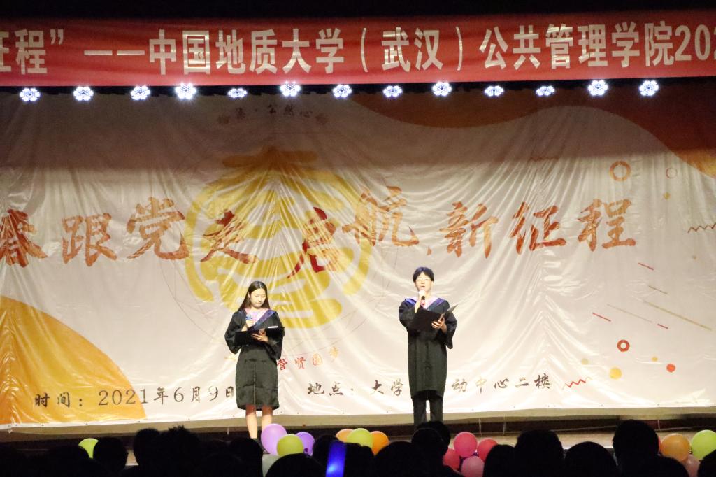 6月9日晚,公司2021届毕业晚会于西区老员工活动中心二楼演播厅顺利举行。公司2021届全体毕业生参加晚会,公司党委书记张吉军、副经理龚健、副书记刘国华、法学系宦吉娥、公共行政系刘中兰、175172班主任周学武、土地资源管理系朱江洪、公共行政系黄德林、171171班主任吕凌燕、172172班主任马向平、院团委副书记(主持工作)李姝慧、毕业年级辅导员吴波、王青涛、辅导员王欣雨、李文伟、周佳仪出席晚会。狄致远、云龙、李琳、雷鹤鸣四名同学主持晚会。