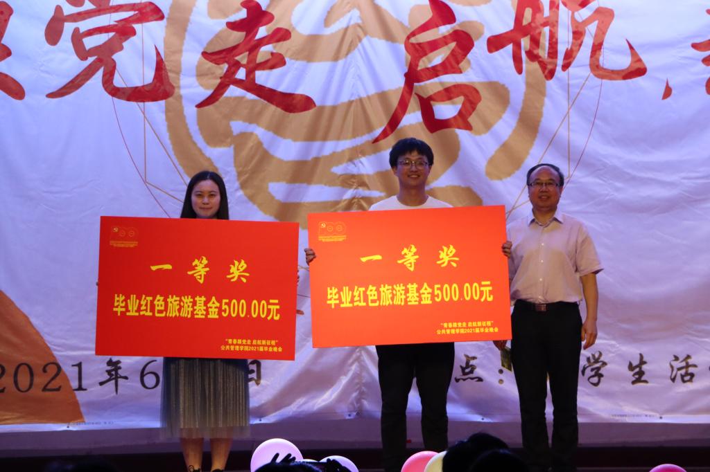 公司党委书记张吉军上台抽取一等奖。一等奖设置2项,均为毕业红色旅游基金500元。一等奖奖项设置响应建党100周年献礼及党史学习要求,为获奖同学提供红色旅游基金,将党史学习与毕业教育相结合,鼓励毕业生同学在实践中学习党史,在红色旅行中感悟党的百年辉煌征程。