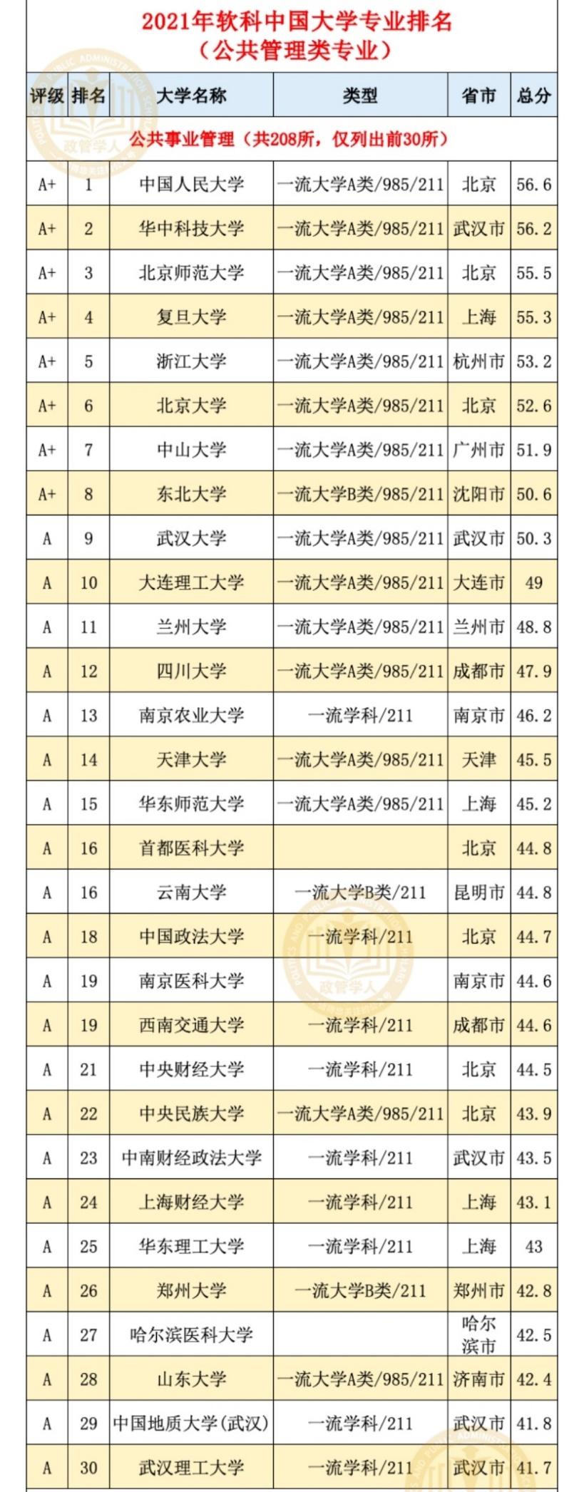 日前,软科对外发布了2021软科中国大学专业排名,公司行政管理、公共事业管理专业获评A类专业。这是软科首次发布针对中国内地高校本科专业的排名,也是迄今为止覆盖专业数量最多、参评专业规模最大的中国大学本科专业排名。