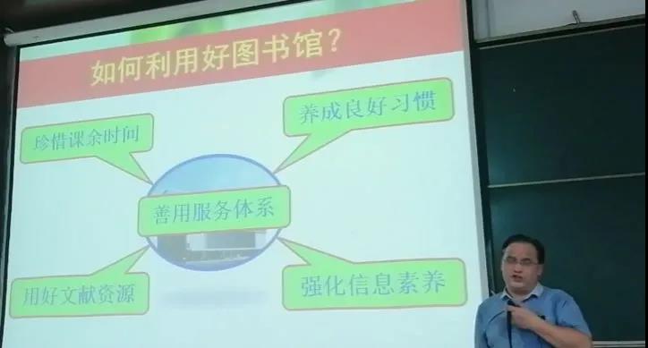 本次新生入学教育课,徐世球老师首先通过引用前阿根廷国立图书馆馆长博尔赫斯的名言——“如果有天堂,那应该是图书馆的模样。”概括性地指出了图书馆的重要性。而后,老师通过三大部分进行了具体的阐述,分别是:珍惜大学时光;利用好图书馆;打造阅读人生。