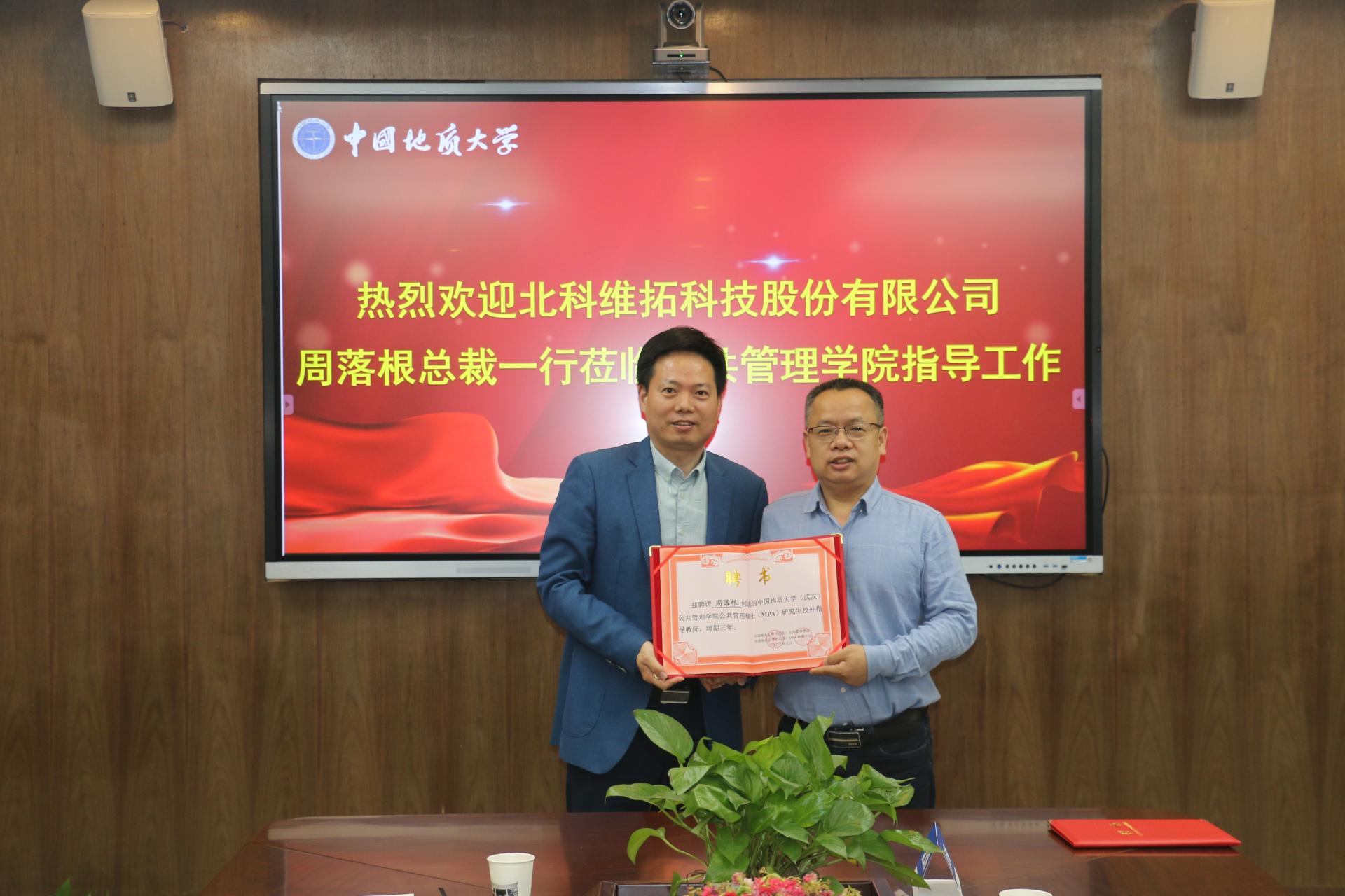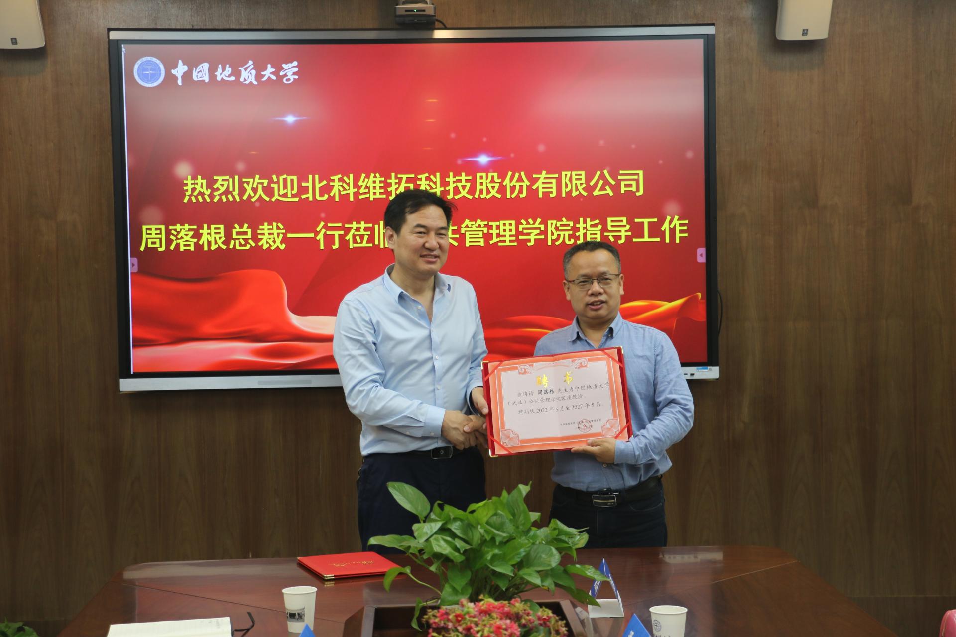 周落根总裁讲到,北科维拓多年来致力于为基层社会治理贡献力量,尤其在依托三维数字系统应用已取得的发展基础,全力打造“1轴3中心6板块”(其中,“1轴”指三维大数据产业,“3中心”指三维万支付中心、三维大数据共享经济中心、信息惠民最后一公里服务中心,“6板块”指软件研发板块、产业园区板块、电子商务板块、支付结算板块、智能制造板块和社区便民服务支撑板块)三维大数据产业布局,为智慧城市和基层数字治理提供技术和解决方案。希望公司能够发挥公共管理学科智力资源为公司发展基层数字治理、数字旅游等提供支持。