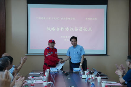 黄鹤救援队总队长邓明锋邓明锋说,黄鹤救援将积极履行社会职责,与地大展开全方位合作,全力推进应急科普宣教,推进政产学研的成果转化,真正实现多赢。