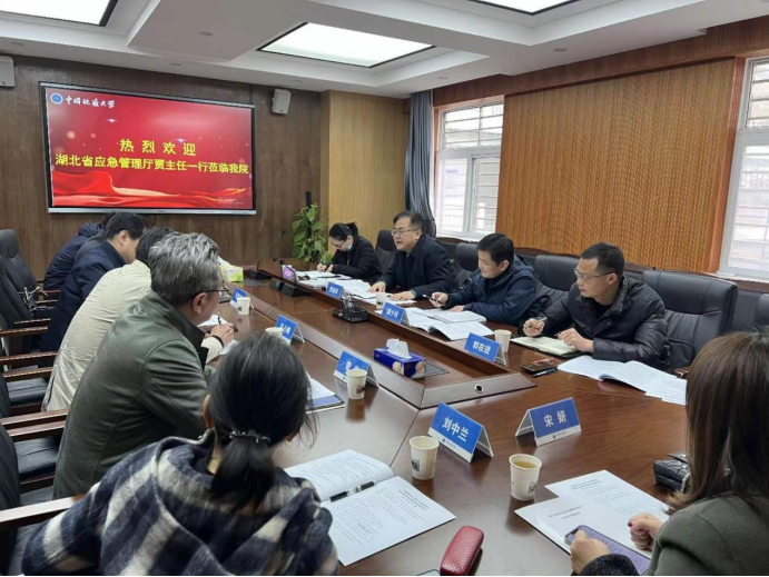 2023年3月2日上午,湖北省自然灾害应急技术中心主任贾新军一行来公司进行座谈交流,颜少枝教授级高工、宋玉娥科长、郭在进科长,公司公共管理公司党委书记张宽裕、副经理李世祥,地质调查研究院副经理吕占峰,公共行政系曾伟教授、刘中兰书记、黄砺副主任、宋妍副教授等教师代表参加会议。会议由张宽裕书记主持。
