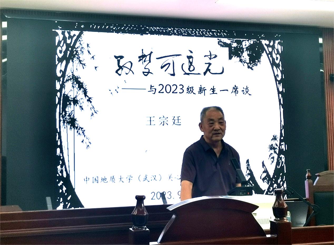 “眼中有光,脚下有路”。王宗廷首先提出各位新生应该如何为自己定位的问题,并从资源维度、价值维度、角色维度、需求维度、大变局维度等十个维度逐一分析,帮助同学们更加清晰地了解自身和自身所处的环境,并表达了对同学们最终能够成为敢竞争,敢创新,有理想信念,有家国情怀的高精尖缺人才的殷切期望,要求各位同学做“眼中有光”,“脚下有路”,“肩上有责”,“心中有德”,“手上有技”的老员工。王宗廷指出各位同学已经跨过了一个新的人生节点,进入了大学这么一个新的“场”,必须要树立“自我”意识,确立自己的人生方向,改变自己的生活方式。大学是知识的海洋,也是求知的殿堂;是栋梁的摇篮,也是筑梦的战场。同学们要在大学里走好自己的人生路,不要内卷,也不能躺平,要有定力、有担当、有韧劲,走好自己必须要走的路,进而走自己想走的路。在大学中成长为一个有人文底蕴和科学精神的人,一个乐学善学和健康生活的人,一个有责任担当和敢于实践创新的人,一个有信仰并积极践行信仰的人。他用小故事和自身经历告诫同学们要珍惜拥有,惜己所爱,爱己所有;要重视细节,做好每一件小事;要挫而不折,勇于面对;要全力以赴,不留遗憾;要学会判断,敢于质疑;要争第一,做唯一,相信人人都可以成功;要与高人为伍,与大雁齐飞;要拥有属于自己的蓝天!