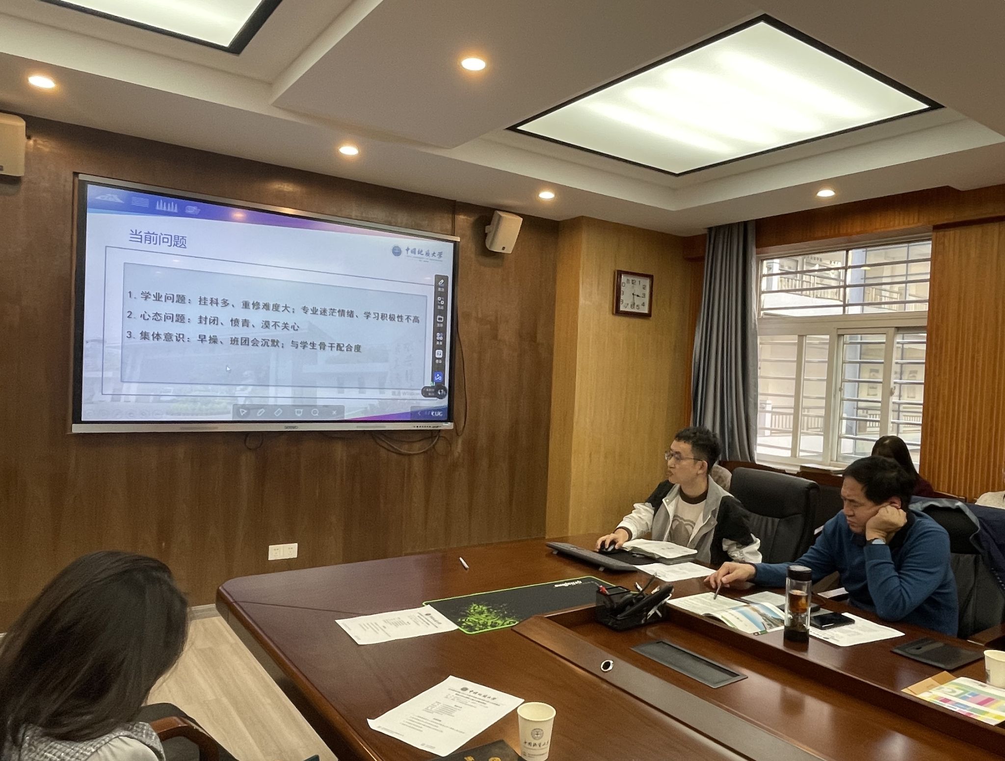 辅导员李姝慧、王青涛、陈杨,兼职辅导员吕承昆,就公司各年级员工基本情况、上学年学风建设成效、年级重点关注问题和下一步工作计划等方面综合展开介绍。