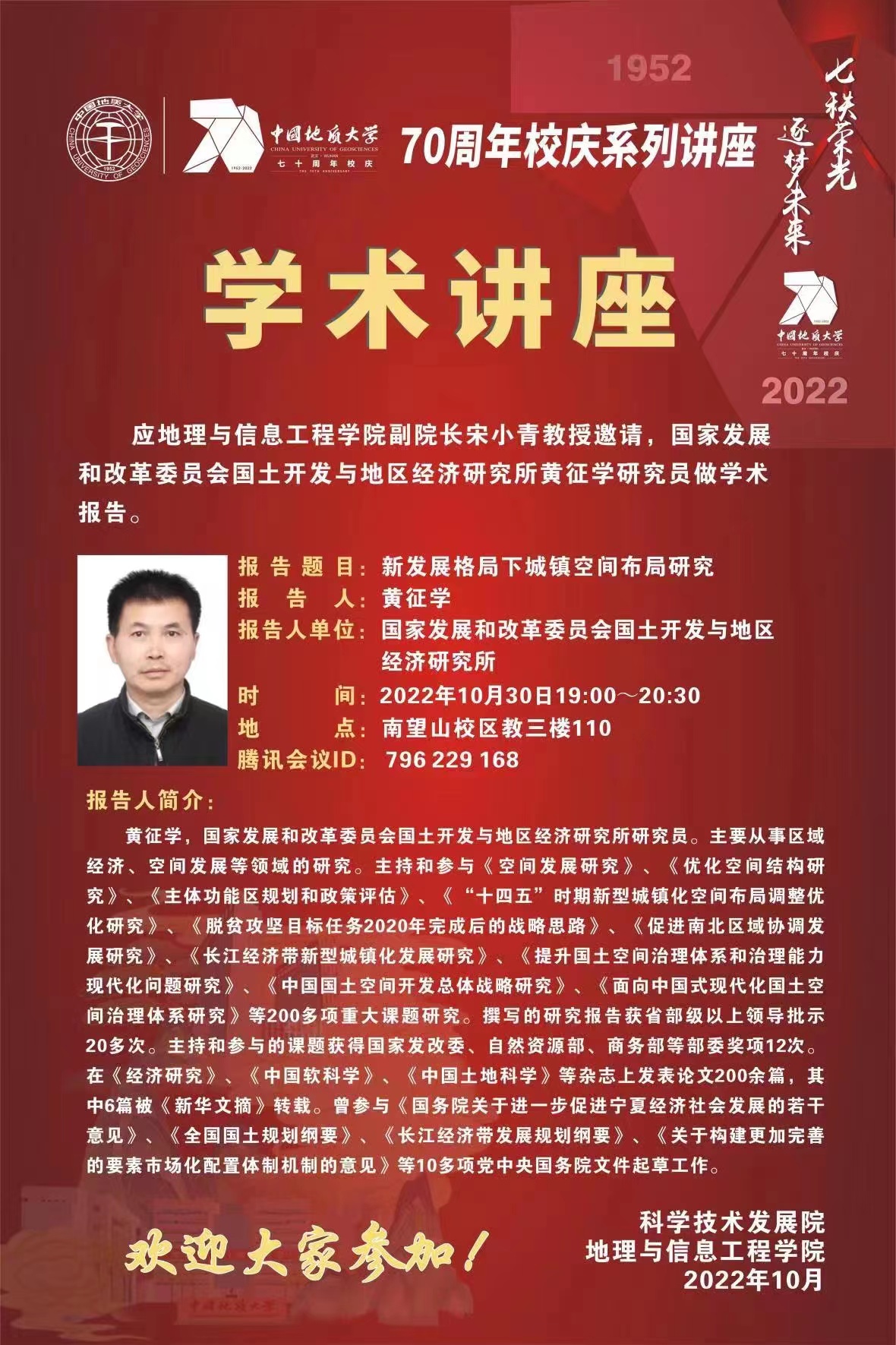 【讲座预告】新发展格局下城镇空间布局研究(2022年10月30日)