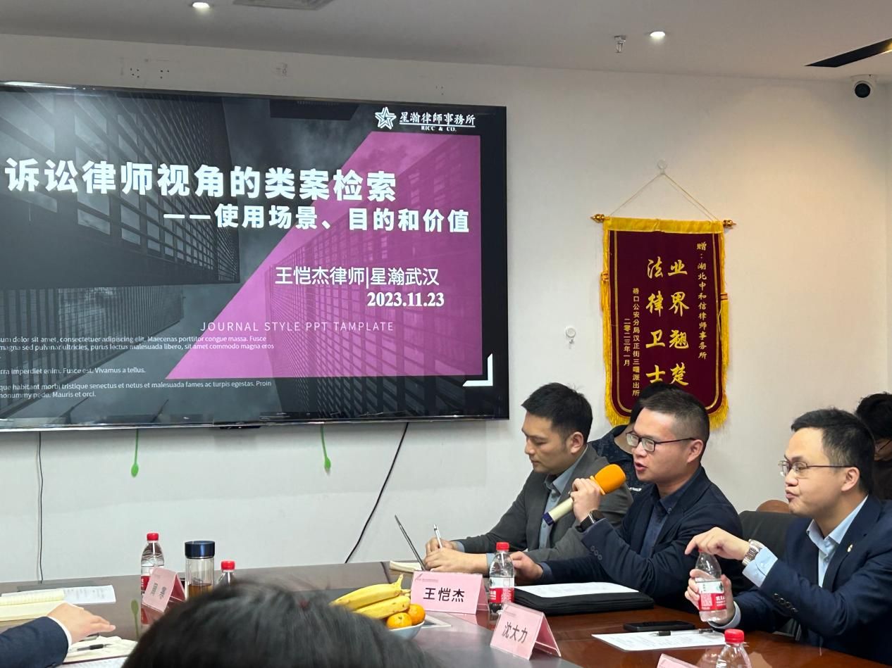 星瀚律所沈大力主任结合律所的发展历程,分享了律所文化创新、发展模式创新、业务创新助力青年法律人才成长的管理经验,并介绍了律所在海事海商、跨境涉外知识产权、国企合规、双碳法治、心理咨询、高校教育板块、企业内控与反舞弊等领域的业务创新,以及律所在寻找蓝海方面的努力。王恺杰律师和万然律师分别从不同领域出发,与同学们展开精彩的分享与对谈。王恺杰律师分享了从律师视角出发的类案检索,包括使用场景、目的与价值,并对类案检索的操作流程与注意事项进行详细的讲解。万然律师从法科生职业规划展开,围绕职业认知、职业学习、职业选择三个纬度,并结合自身工作经验,跟与会人员分享了自己心得体会,特别强调实践与理论的同等重要性,为员工们提供了宝贵指引。