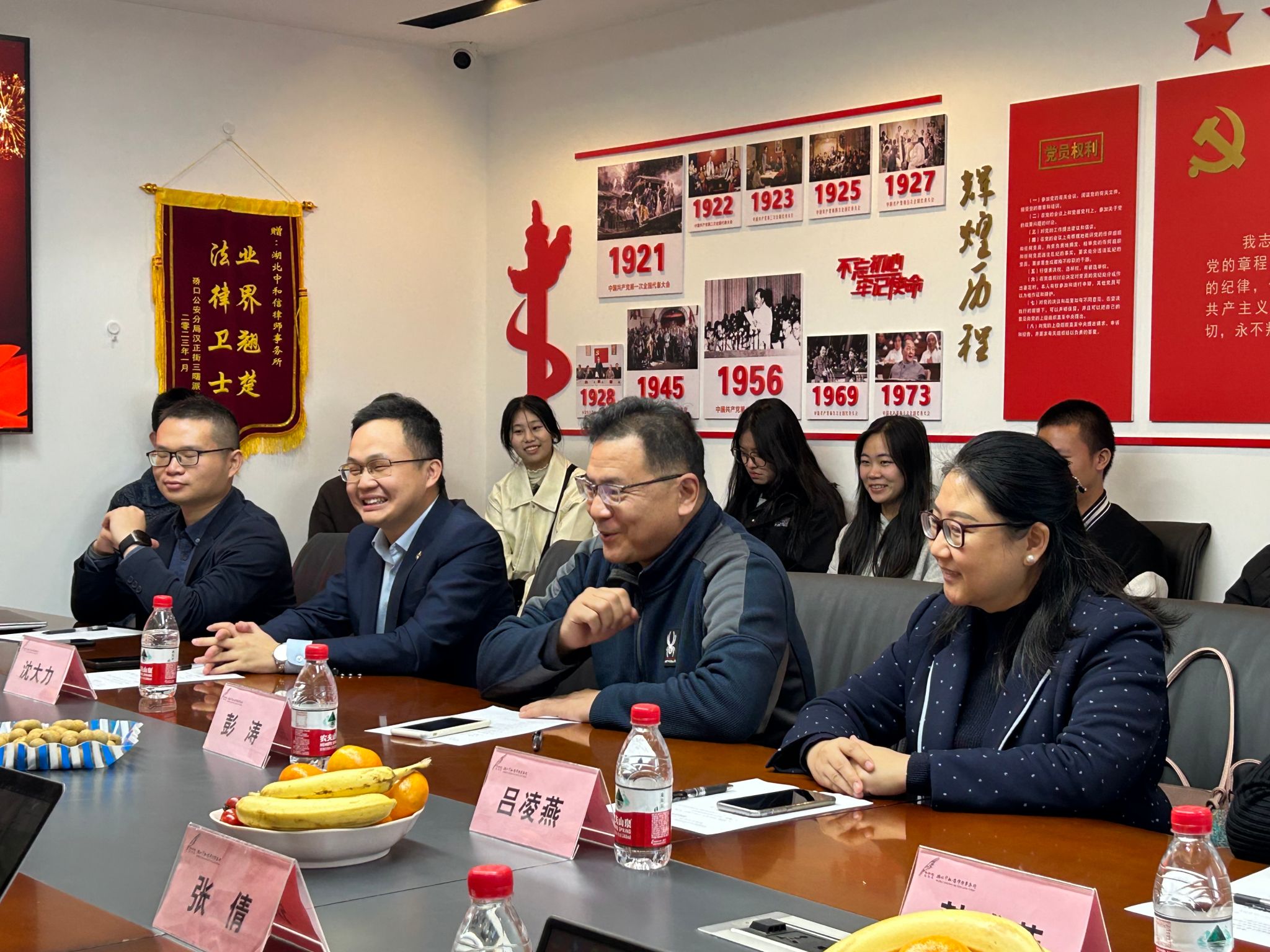 随后,法学师生与星瀚武汉律所一同前往湖北中和信律师事务所参观交流。中和信所李文主任对地大师生与星瀚武汉律所律师一行来访表示热烈欢迎,并就律所发展历史、律所文化、律师办公区与荣誉墙等进行了介绍。
