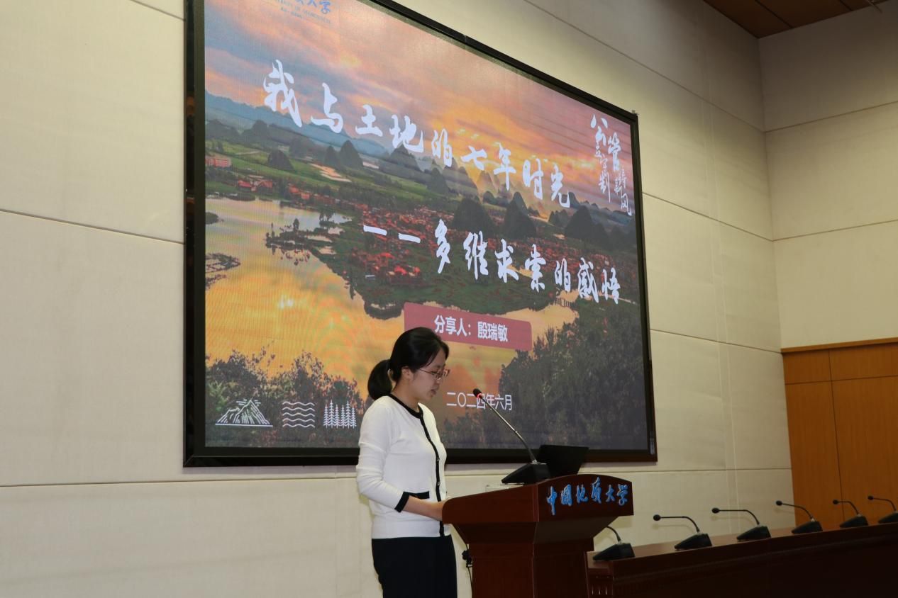 “土地日”当天,活动通过室内宣传、故事分享的方式,吸引更多“土地人”深度参与。“土地青年说”故事分享会成为了活动的亮点。来自必一运动的十大标兵员工俞泽欣、优秀共产党员殷瑞敏等师生代表,分享他们与土地的故事,展现地大土地人天下为公的家国情怀、善治以管的过硬本领、敢为人先的挺膺担当。