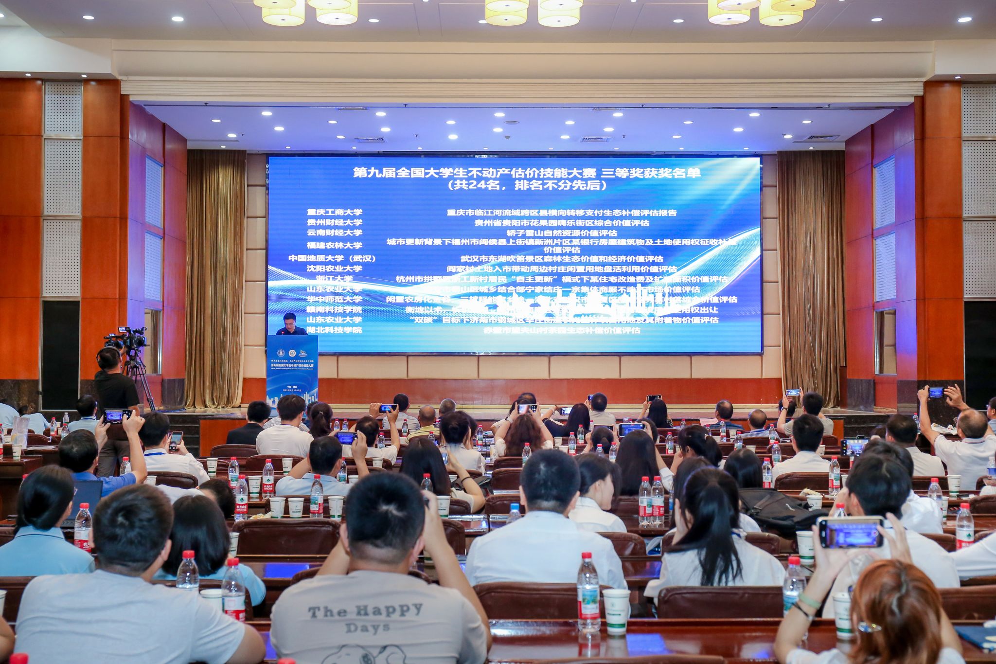 本届大赛由教育部公共管理类教学指导委员会主办,全国高校土地资源管理经理(系主任)联席会、中国土地估价师与土地登记代理人协会、中国房地产估价师与房地产经纪人学会共同指导,华中农业大学必一运动、湖北省土地估价与登记代理协会、湖北省房地产业协会共同承办,41家行业机构共同协办。经初赛评审筛选,来自全国41所高校的60支参赛队伍获得参加决赛资格,学界及行业领导、学者、专家、参赛师生近400人莅临决赛现场。